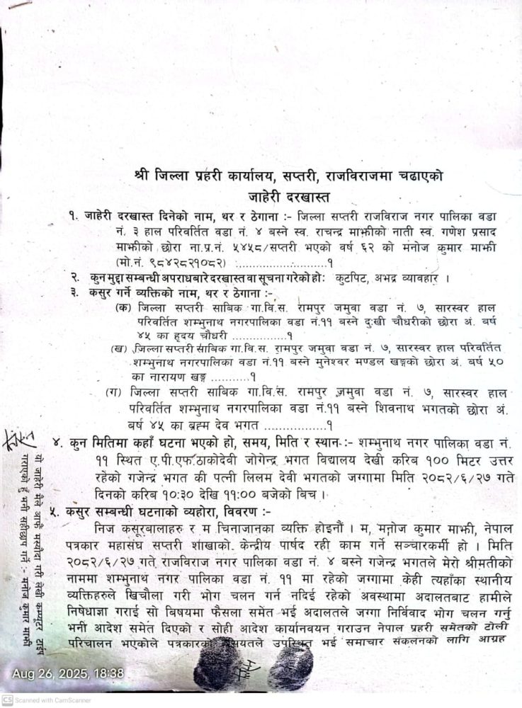 वडाअध्यक्षकै नेतृत्वमा सप्तरीको शम्भुनाथमा पत्रकार मनोज माझीमाथि कुटपिट