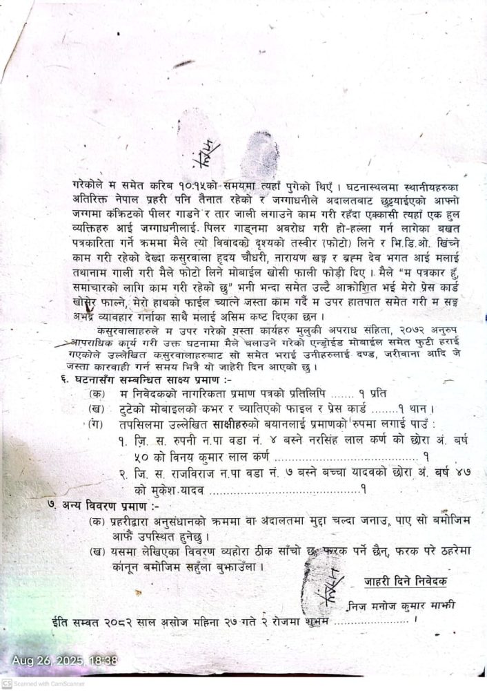 यस घटनाले श्याम्भुनाथ नगरकै जनप्रतिनिधिहरूको चरित्र र जिम्मेवारीप्रतिको गम्भीर प्रश्न उठाएको छ। पत्रकारमाथिको हिंसा कुनै व्यक्तिगत घटना होइन, यो अभिव्यक्ति स्वतन्त्रता र प्रेस स्वतन्त्रतामाथिको प्रहार हो।