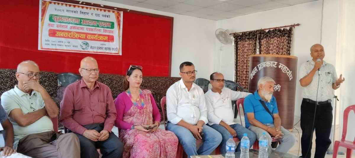 सप्तरीको राजविराजमा शुक्रबार एक कार्यक्रमका बक्ताहरुले बर्तमान परिबर्तित अवस्थामा राज्यको तीनै तहका सरकार पत्रकारिता जीवन्त होस् भन्ने सोचमा नरहेकोले बताएको छ । नेपाल पत्रकार महासंघ सप्तरीद्वारा तिहार र छ्ठ पर्वको अवसरमा आयोजित शुभकामना आदानप्रदान तथा’ बर्तमान अवस्थामा पत्रकारिता” विषयक अन्तरक्रिया कार्यक्रमका सहभागी बक्ताहरुले यस्तो बताएका हुन् ।