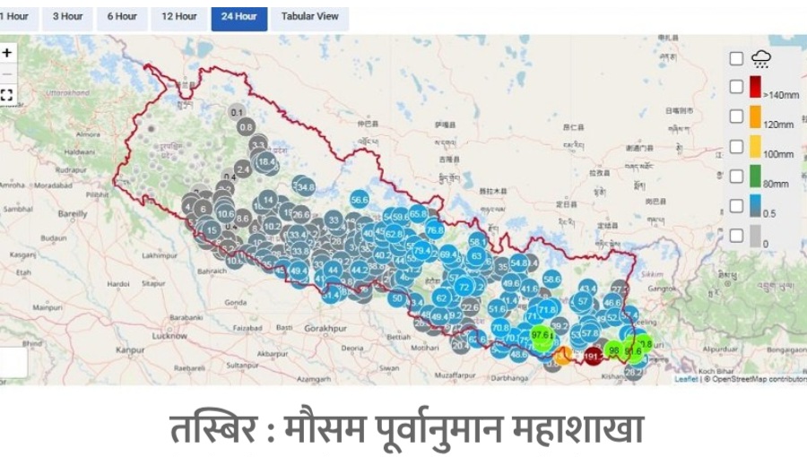 सप्तरी र मोरङमा ठूलो वर्षा : सुदूरपश्चिम र कर्णालीबाहेकका अरू ठाउँमा निरन्तर झरी