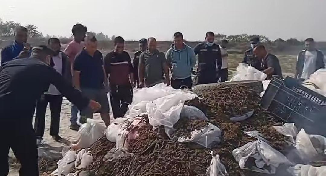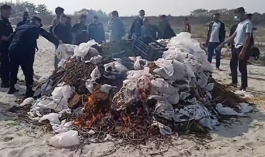 सप्तरी प्रहरीद्वारा बरामद गरिएको झण्डै ९७८ किलोग्राम गाँजा नष्ट
