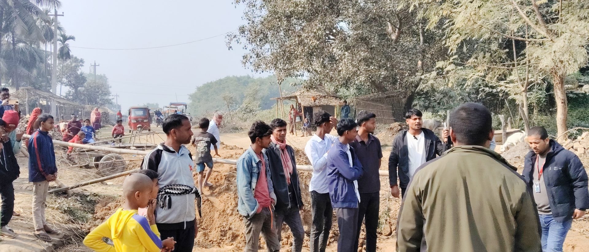 सप्तरीमा सडक निर्माणको माग गर्दै पूर्वपश्चिम हुलाकी मार्ग अवरुद्ध