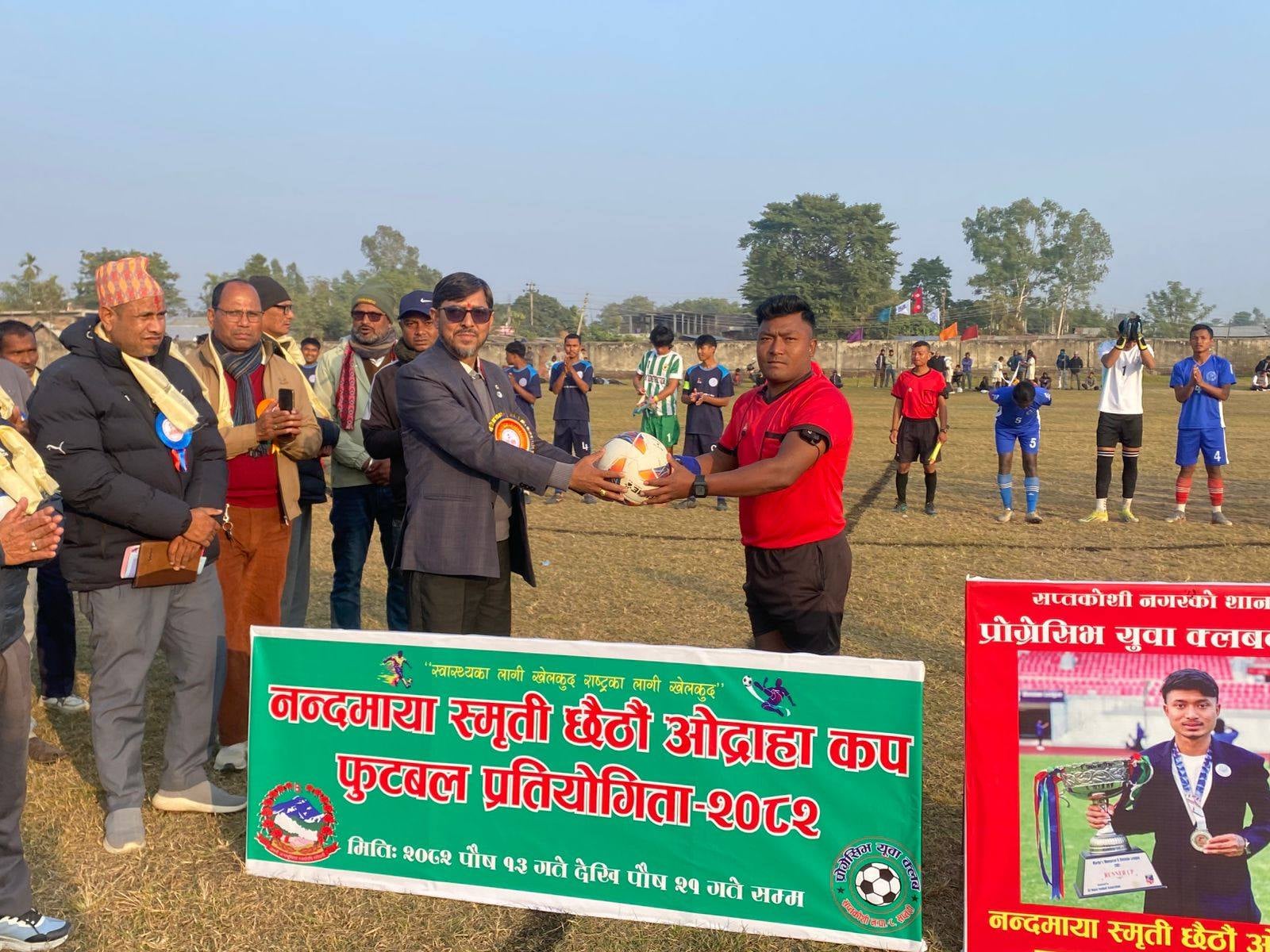 सप्तरीको सप्तकोशी नगरपालिकामा नन्दमाया स्मृति छैठौं ओद्राहा कप फुटबल प्रतियोगिता सुरु