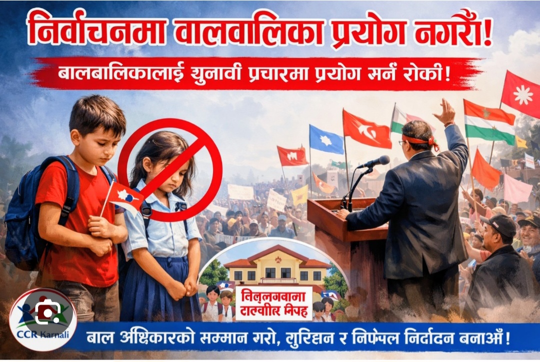 यसअघि आजै जेनजी फ्रन्टले विज्ञप्ति निकालेर फागुन २१ गते हुने चुनावमा बालबालिकाहरूको प्रयोग भइरहेको विषयप्रति आपत्ति जनाएको थियो । जेनजी फ्रन्टले फागुन २१ गते हुने चुनावका लागि बालबालिकाहरूको प्रयोग भएको भन्दै त्यसप्रति फ्रन्टको गम्भीर ध्यानाकर्षण भएको बताएको हो ।
