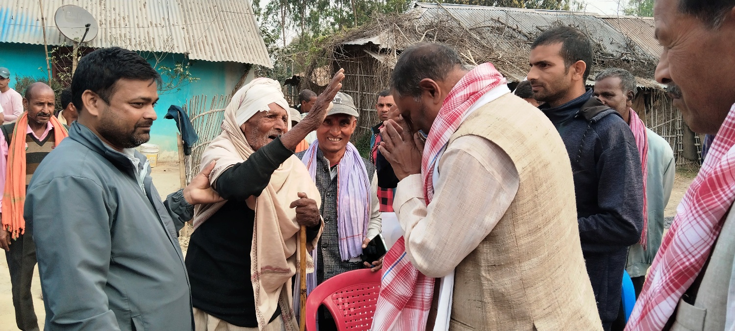 शुक्रवार विहान विष्णुपुर गाउँपालिका वडा नम्बर १ स्थित खुरहुरिया पुग्दा जसपा नेपालका अध्यक्ष आउने आसमा हुलाकी सडकमै स्थानीयवासिन्दा बाटो कुरा बसेका थिए । गाउँ पुग्दा कसैले गम्छा, खादा, फूलको माला लगाएर उहाँलाई सर्वसाधारणले स्वागत गरेका छन् । प्रौढ एवम् ज्येष्ठ नागरिकसँग अध्यक्ष यादवले दुबै हात जोड्दै ‘नमस्कार, हम उपेन्द्र यादव, छाता छाप’ भन्दै आशिर्वाद थाप्ने गरेका छन् ।