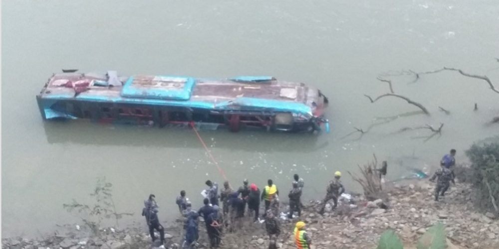 त्रिशुलीमा बस खस्दा ७ जनाको मृत्युु : ४१ जनाको जिविते उद्धार
