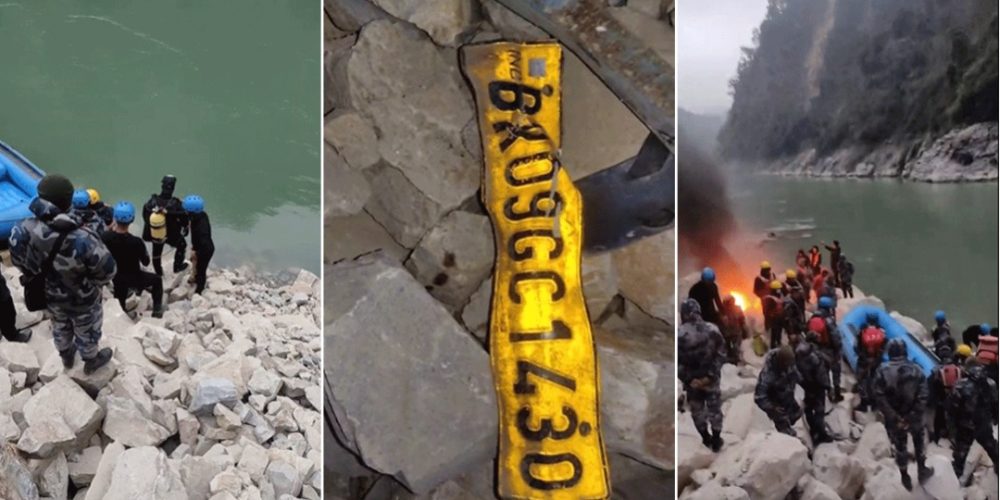 त्रिशूली नदीमा खसेको भारतीय नम्बर प्लेटकाे जीप फेला ,जीपमा सवारहरुकाे खाेजि कार्य जारी