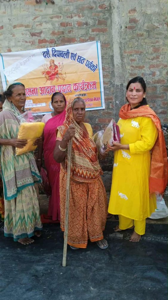 छठ पर्वको अवसरमा फाउन्डेशनद्वारा महिलाहरुलाई साडि वितरण