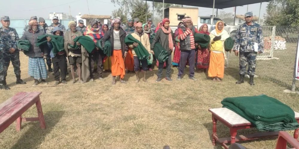 चिसाेबाट जाेगिन सशस्त्र प्रहरीद्वारा सप्तरीको डाक्नेश्वरीमा कम्बल बितरण